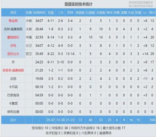 接下来看看球员数据:雷霆当家球星亚历山大出战35分钟,22投8中,三分3中0,罚球14中13,得到29分6篮板4助攻3失误3犯规,正负值+14全场最高。亚历山大已经连续118场得到20+,距离张伯伦的历史纪录只差8场了。