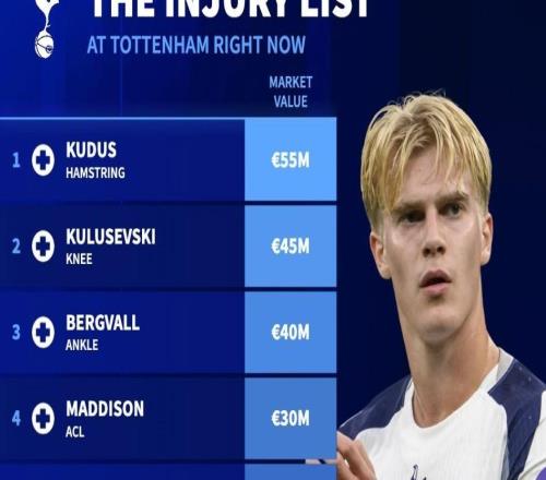 德转列热刺伤病名单:8人因伤缺阵,总身价超过2.5亿欧元 -